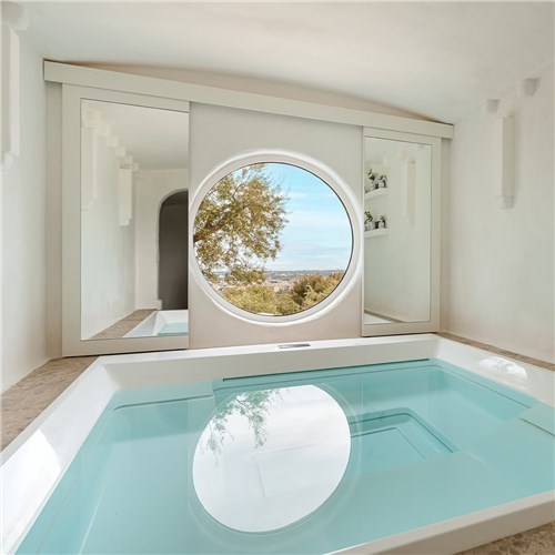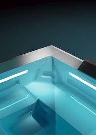 Sa spécificité : la chromothérapie est localisée au même niveau que la ligne d’eau ce qui confère un jeu de lumière extraordinaire dans le spa.